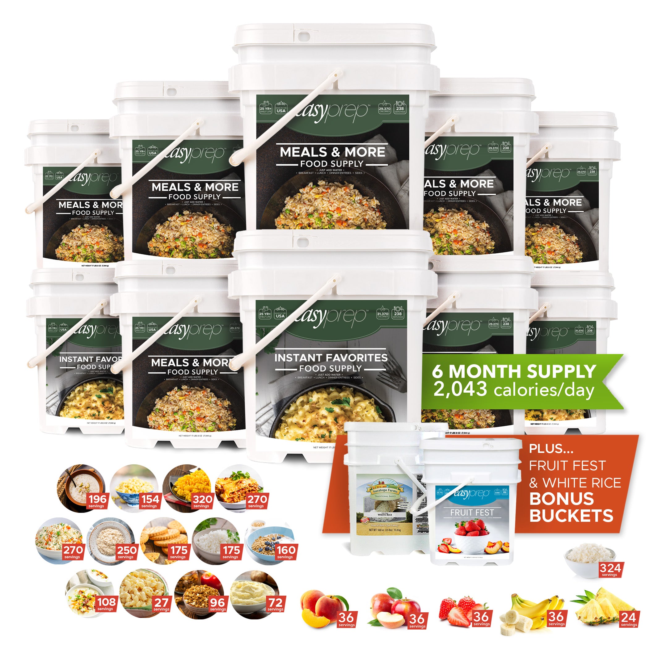 Twelve Buckets of Instant Emergency Food Storage Meals | Plus Bonus Freeze Dried Fruit Bucket