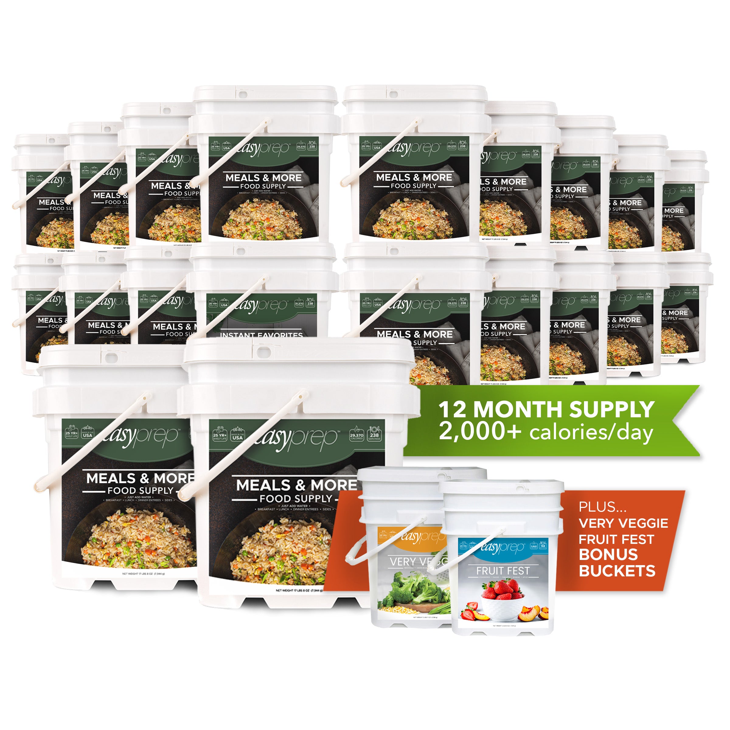 Twenty-Four Buckets of Instant Freeze Dried Emergency Food Storage Meals